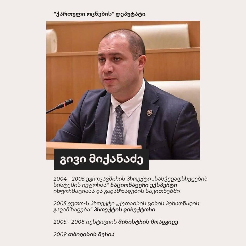 - გივი მიქანაძე, “ნაციონალური მოძრაობის” დროს იუსტიციის მინისტრის, ზურაბ ადეიშვილის მოადგილე (ბიოგრაფია)