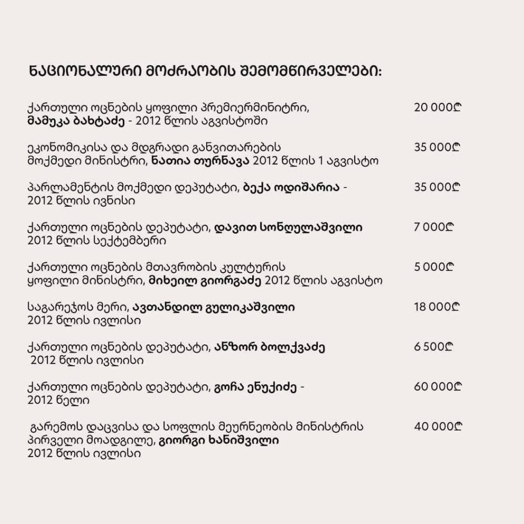 - “ნაციონალური მოძრაობის” შემომწირველები “ქართული ოცნებიდან”